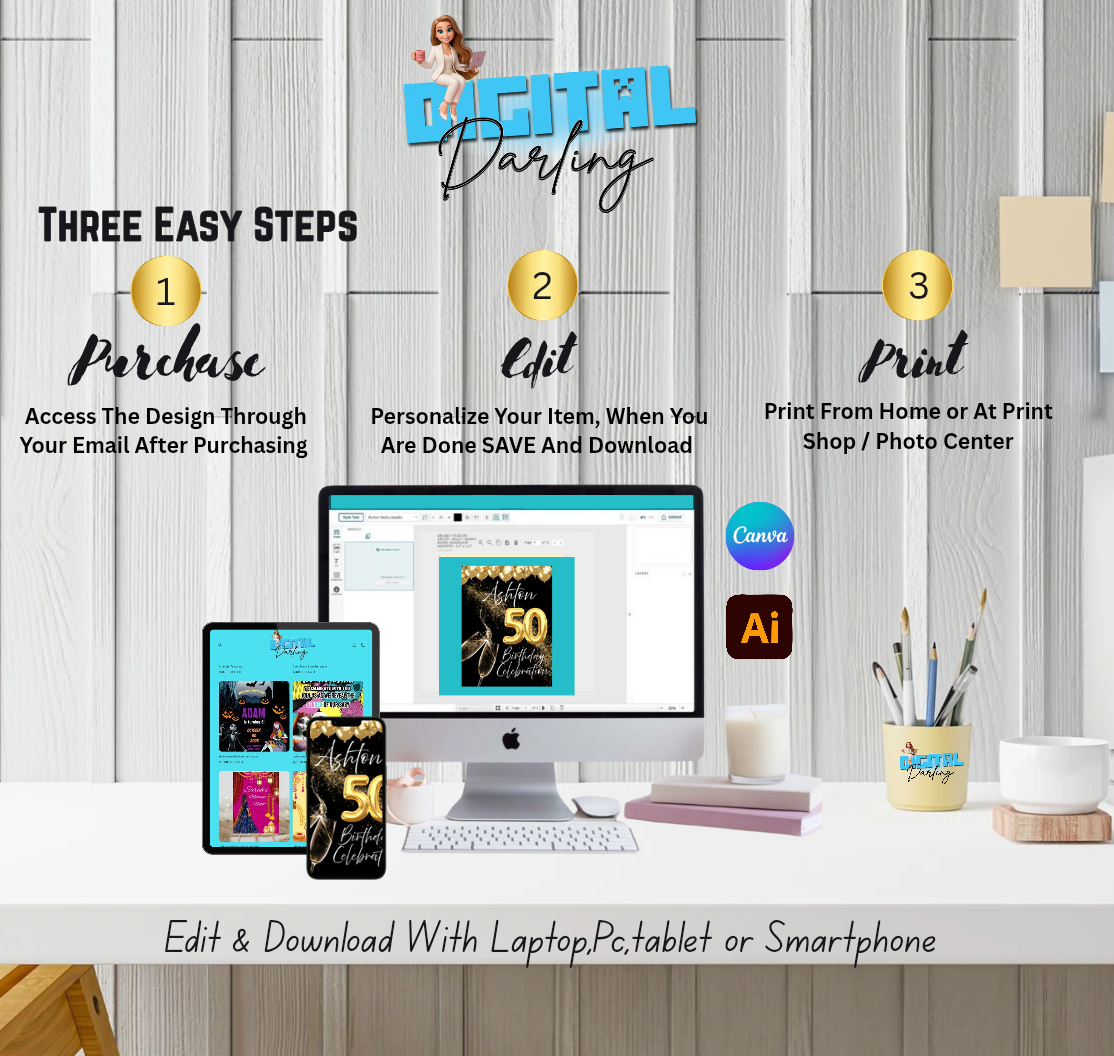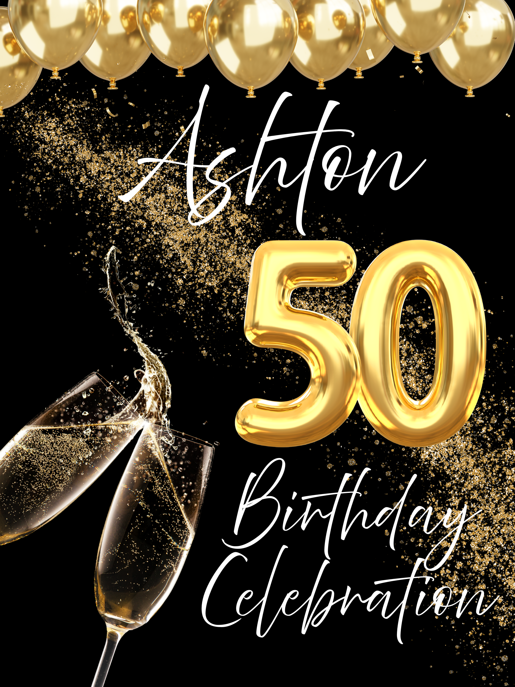 50th Birthday Sign Black & Gold Editable PDF Download Ready To Print