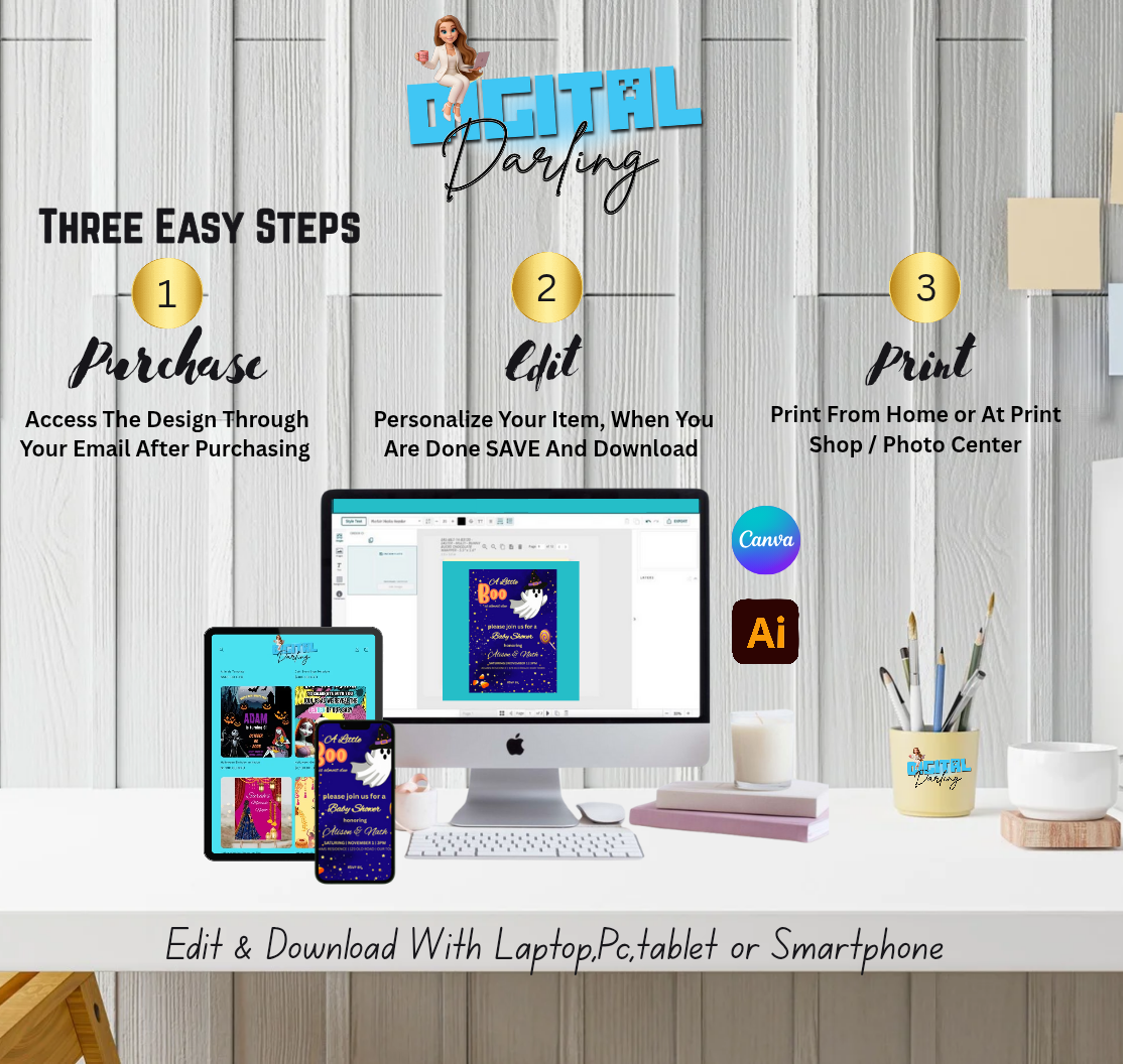 Baby Shower Invitation Halloween boo theme, editable PDF Ready to print