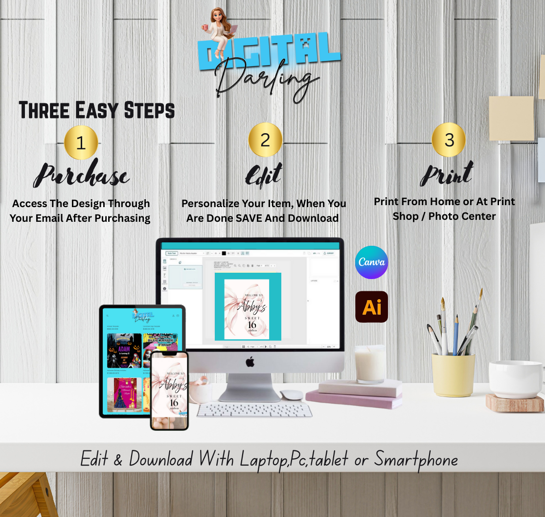 Editable PDF Download sweet 16 birthday Template bow theme Ready to print